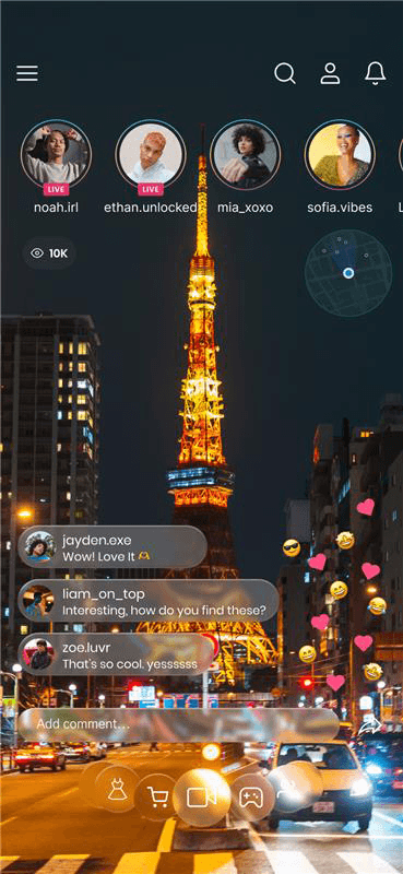 See friends, creators, and trending shopping spots live around you through shared AR views.